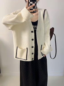 韩系大码慵懒风针织开衫女2025秋冬新款宽松简约休闲口袋毛衣外套