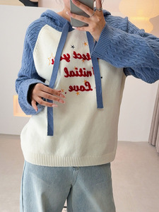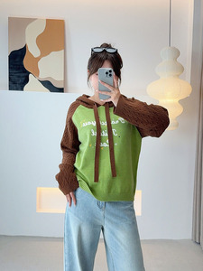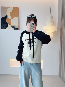 子元2025秋季新款大码女装胖mm200斤插肩袖字母连帽宽松毛衣F533