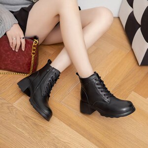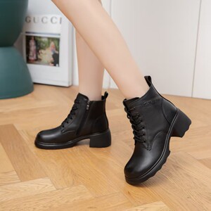 头层牛皮粗跟短靴女2025新款马丁靴真皮加绒气质高跟瘦瘦靴皮靴子