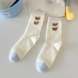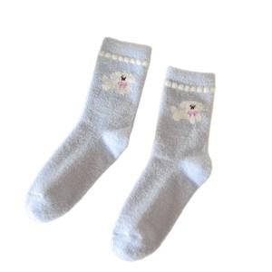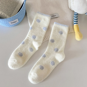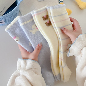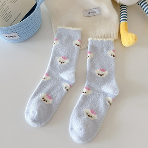 澳绒保暖袜子女中筒袜秋冬款加厚加绒毛绒可爱蓝色小狗冬天长袜