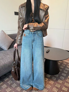 十三行女装辣妹大阔腿牛仔裤女冬季款加绒高腰宽松直筒裤加厚植绒