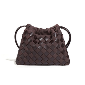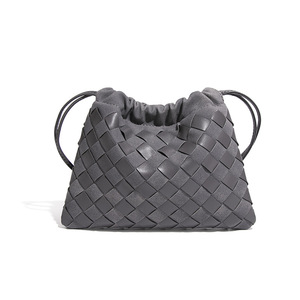 秋冬新款小众抽绳福袋包质感双拼流行手工编织女包单肩斜跨云朵包