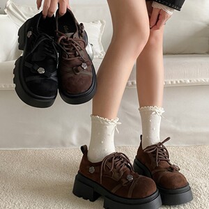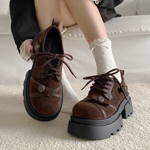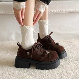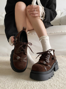 「慵懒感碾压基础款」2025复古厚底乐福鞋女鞋春秋系带增高小皮鞋