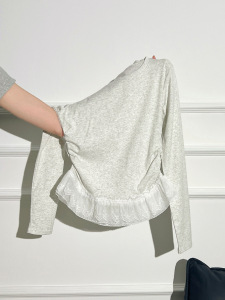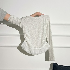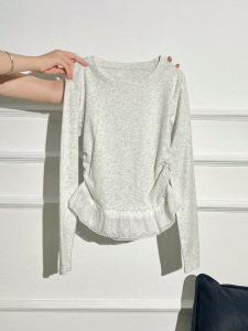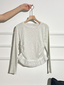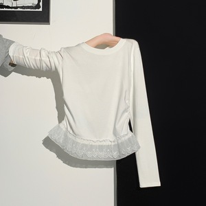 蕾丝下摆高级感圆领打底衫T恤女早秋新款法式纯欲风显瘦长袖上衣