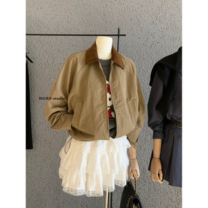 塞纳WGWE 7148秋装2025新款小个子小众工装夹克开衫短外套