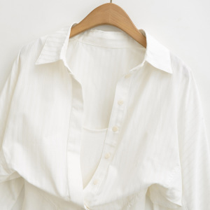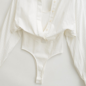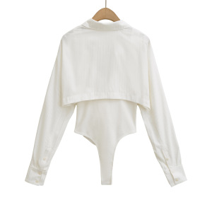 CL25117-25秋季新款 法式简约风修身收腰白色长袖拼接衬衫连体衣