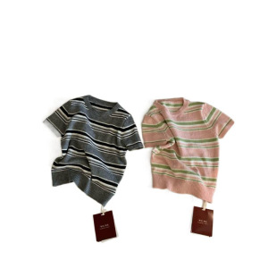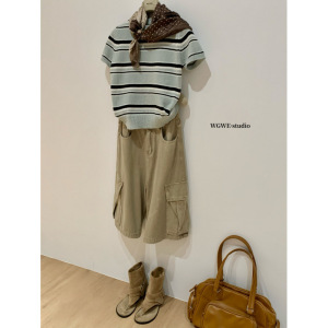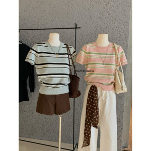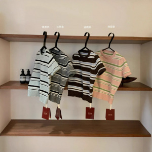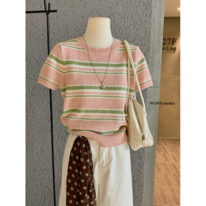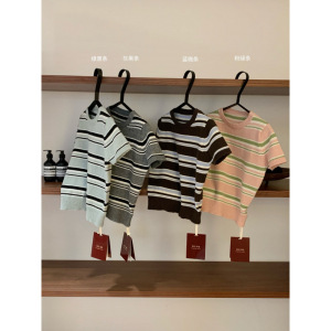 塞纳WGWE7257秋装2025新款百搭圆领撞色短袖针织衫上衣