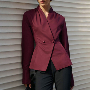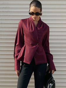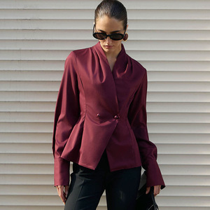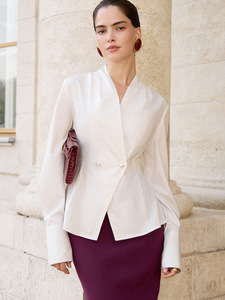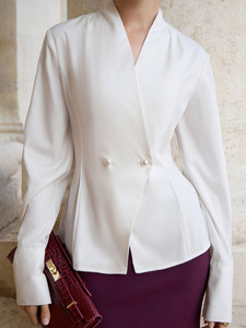 设计感V领收腰衬衣女秋冬新款简约百搭修身衬衫气质通勤2025跨境