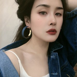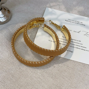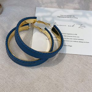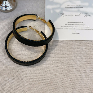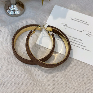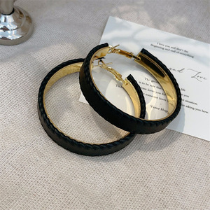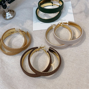 港风秋冬新款PU皮大耳圈高级感法式耳环个性几何圆形潮流夸张耳饰