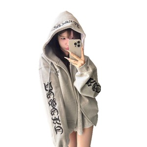 美式高街华夫格哥特风字母连帽卫衣女2025秋冬款开衫拉情侣装外套