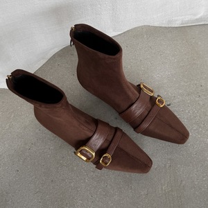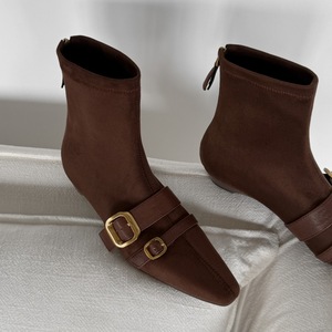 2025秋冬新款时尚方头弹力瘦瘦靴皮带扣后拉链加绒低跟短靴女40码