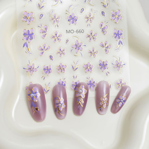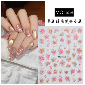 爆款繁花掐丝珐琅美甲贴烫金轻奢质感浮雕多色渐变繁花甜美美甲贴