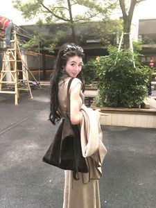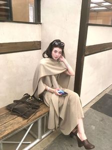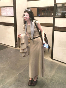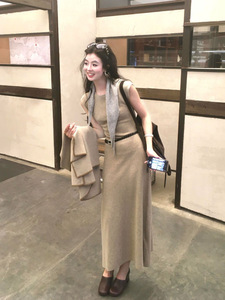 韩系早秋穿搭法式披肩式气质慵懒松弛感针织吊带连衣裙两件套装裙