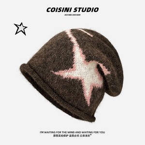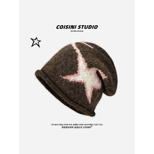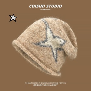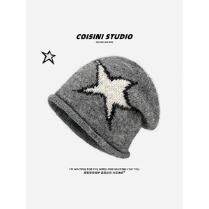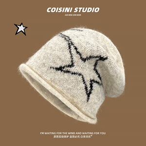 美式辣妹星星卷边针织堆堆帽子女2025新款秋冬百搭显脸小毛线冷帽