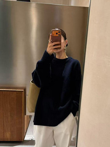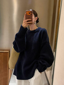 慵懒风复古软糯加厚圆领针织毛衣女2025冬季新款宽松气质针织上衣