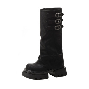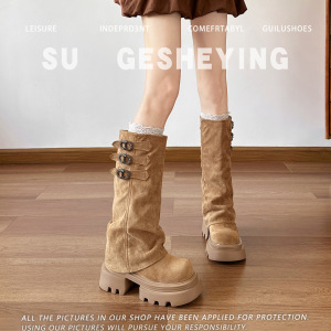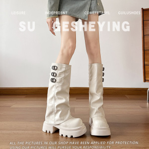 厚底欧美裤管高筒靴女2025秋冬新款百搭增高小个子粗腿长筒骑士靴