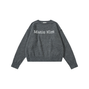 韩国matinkim 25秋冬休闲logo缝线宽松男女百搭针织圆领套头毛衣