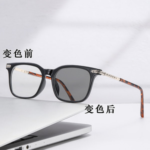 高级感感光变色近视眼镜跨境时尚百搭网红防蓝光眼镜复古架近视镜
