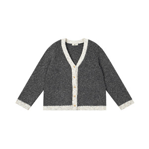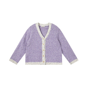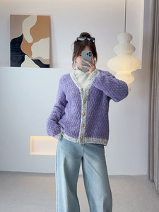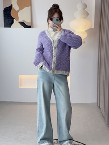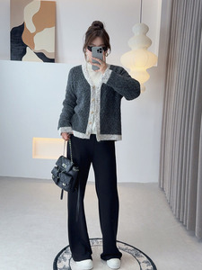 双天2025秋新款胖妹妹大码女装针织衫拼色V领针织开衫女装秋F589