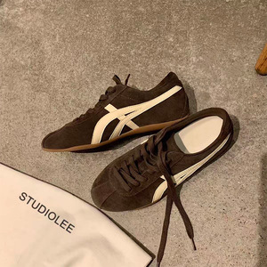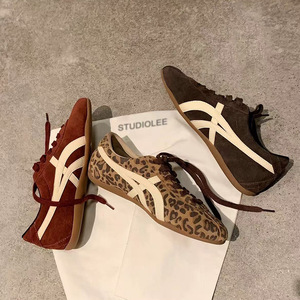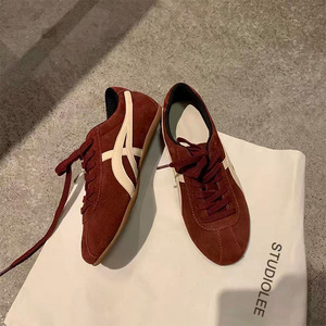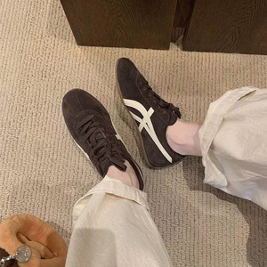 葡萄妈隐形内增高时髦撞色系带平底软底板鞋休闲阿甘德训鞋女秋冬