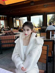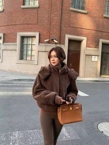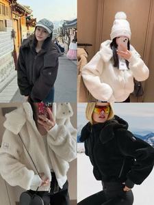 Narcos肯豆同款alo25秋冬新款奶油泡芙羊羔毛连帽短款拉链外套