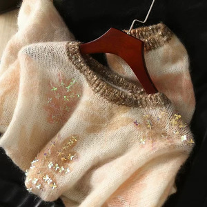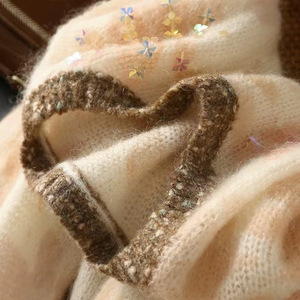 慵懒百搭秋日枫叶重工亮片钉珠羊毛马海毛宽松圆领长袖针织衫女装
