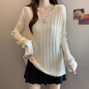 黑色针织衫V领长袖毛衣外穿2025秋冬新款大码修身打底上衣A7610