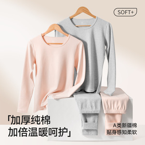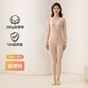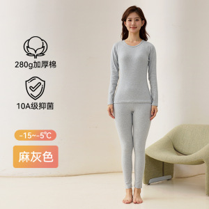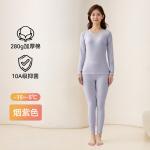 280g加厚棉A类纯棉女士秋衣秋裤圆领套装10A抑菌透气女士保暖内衣