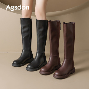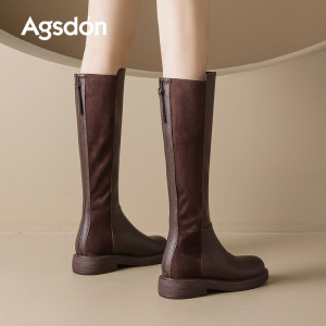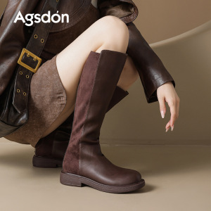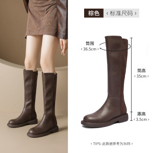 奥古狮登棕色长筒靴女2025新款秋季时尚不过膝复古美拉德骑士靴子