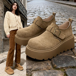 全包博肯鞋小个子增高百搭休闲单鞋女2025春秋新款松糕厚底勃肯鞋