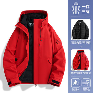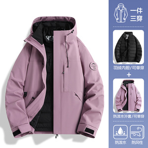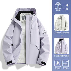 骆陀羽绒服冲锋衣女款2025新款秋冬户外三合一加厚内胆滑雪服外套