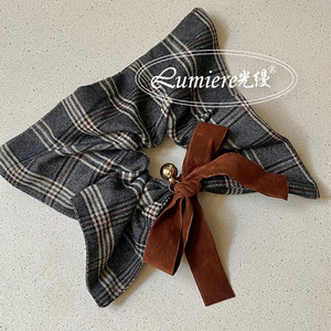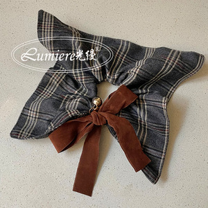 秋冬氛围感棕色丝绒蝴蝶结小铃铛方巾发圈毛呢格纹马尾肠圈发绳女