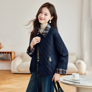 中年妈妈轻薄棉服外套2025新款宽松大码中老年女装拼接秋冬款棉衣