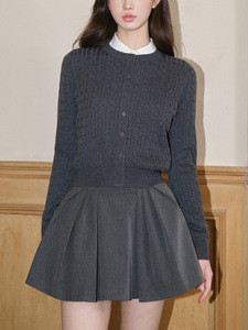 avenment/立体绞花毛织开衫羊毛混纺圆领毛衣长袖外搭上衣女秋冬