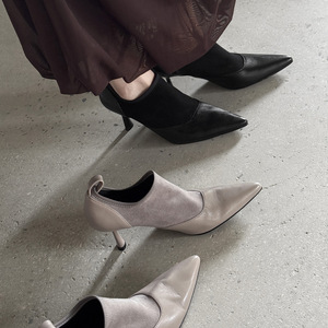 秋冬季高跟鞋女细跟2025新款真皮法式气质尖头及踝靴黑色深口单鞋