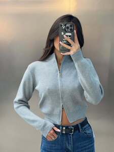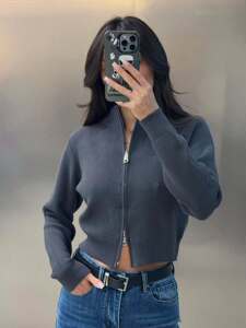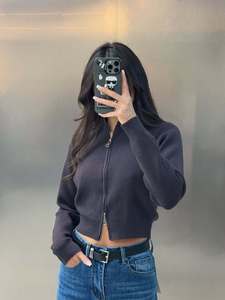 2025秋冬季新款BM风ins博主街拍纯色拉链针织衫修身弹力针织上衣