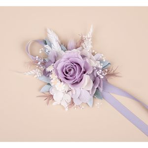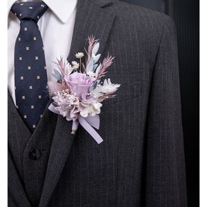 葡萄紫婚礼胸花玫瑰绣球干花新郎伴郎仪式感装饰小众婚庆花艺成品