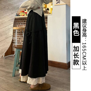 蕾丝花边毛呢半身裙女秋冬2025年新款高腰中长款伞裙拼接a字长裙