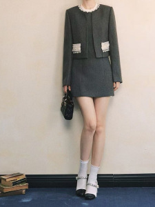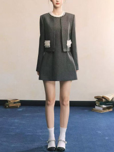 富家千金风无袖连衣裙miu系气质A字裙小香风西装外套两件套2025秋