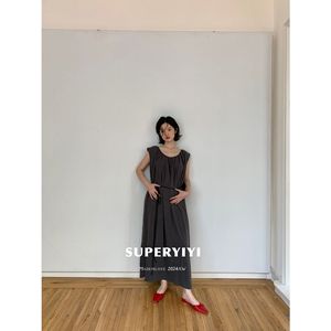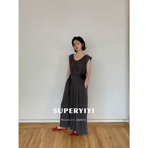 CZ ZHANG-法式减龄宽松显高磨毛无袖连衣裙(配腰带)36817-1