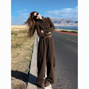 美式辣妹休闲运动套装女秋季时尚高级感工装卫衣阔腿裤宽松两件套