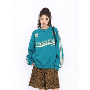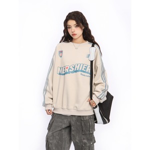 批发美式三条杠圆领卫衣女2025秋季新款宽松bf学院风情侣秋冬上衣