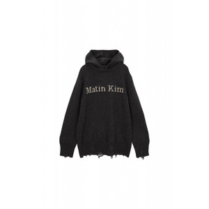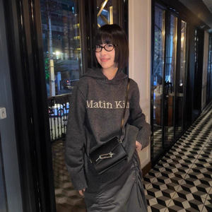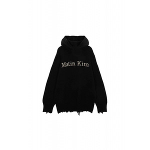 韩国小众潮牌matinkim连帽针织衫女25新款mk破洞套头毛衣男女同款