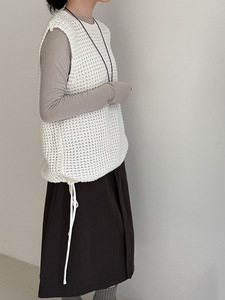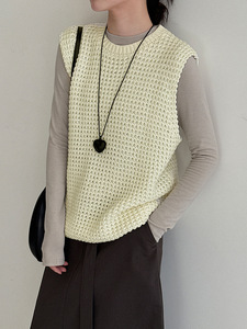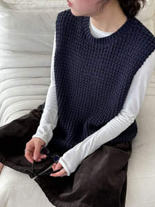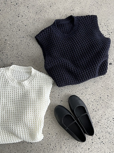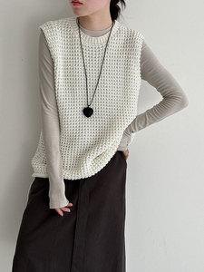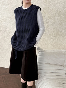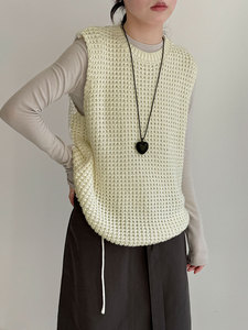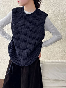 鹿西 韩系设计感粗织无袖背心针织衫女秋季新款气质慵懒上衣ss838