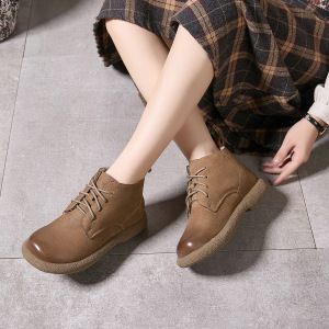 加厚毛2025新款复古风系带马丁靴女圆头平底短靴女软皮加绒靴子