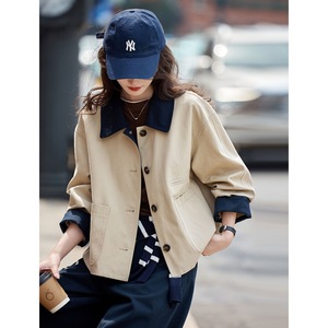 已出货 含莱赛尔秋季减龄短款小个子洋气撞色百搭工装外套风衣