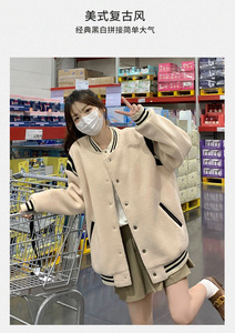 初高中生棒球服厚外套女秋冬季加绒羊羔绒羊羔毛加厚穿搭2025新款