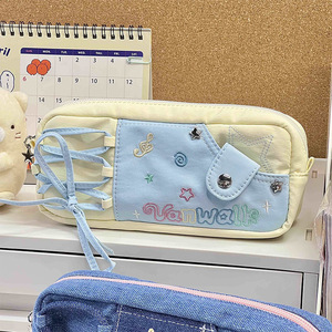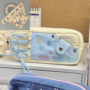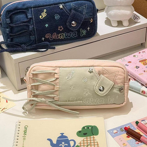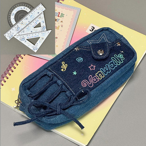 牛仔多巴胺笔袋ins风高颜值撞色大容量痛包文具袋多层铅笔收纳袋