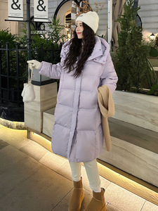 中长款羽绒棉服女2025年新款拼接撞色收腰小个子冬季加厚棉衣外套