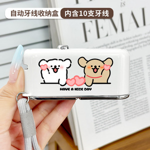 便携式多巴胺牙线盒自动弹出高档牙签线剔趣味一次性牙线棒收纳盒
